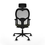 The office chair with headrest model 2D036N2 from Piqueras y Crespo is an ergonomic and functional solution designed to provide optimal comfort during long workdays, even for 24-hour continuous use. This office chair in olive green features a fixed backrest made with an outer PVC frame and a seat reinforced with high-density injected polyurethane foam (50 mm thick and 50 Kg/m³), ensuring both durability and comfort. Its design includes a 2D adjustable headrest and a 1D lumbar support, adding ergonomic support to prevent postural fatigue. It also has 2D adjustable armrests that adapt to the user, enhancing versatility and arm positioning. The synchro mechanism with 5 locking positions offers controlled movement to adjust the backrest and seat tilt, while the height is fully adjustable, allowing customization from 48 to 61 cm seat height and 121 to 134 cm total height. The nylon 5-star base with a 680 mm diameter and 65 mm nylon wheels, with steel axles and bolts, ensure stability and smooth movement on flat surfaces, all certified to UNE-EN-1335 and BIFMA quality standards for professional environments. The breathable mesh and fabric promote ventilation, helping maintain a comfortable temperature on the backrest during extended use. Its maximum capacity is 120 kg, safely accommodating different users. With a sober design and elegant green tones, this chair combines ergonomics, durability, and functionality, making it a suitable option for workspaces requiring comfort and technical support during intensive hours.