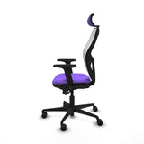 The Piqueras y Crespo 2D036N2 office chair with headrest is an ergonomic model designed for those who need comfort during long work hours. This office chair features adjustable and height-regulated seating, allowing the seat height to be set from 48 to 61 cm, with a total height ranging from 121 to 134 cm, enabling optimal posture for different users. It includes 2D armrests, adjustable in both height and angle, enhancing arm support and ergonomics to reduce fatigue. Its fixed backrest combined with a headrest adjustable in two dimensions provides essential cervical support to prevent neck strain during extended work periods. The frame is finished in breathable mesh and fabric in lilac, promoting proper ventilation that keeps the back cool all day. It has a 5-spoke nylon base with 65 mm diameter wheels, ensuring stability and smooth, quiet movement on flat surfaces, contributing to a dynamic and efficient work environment. Its 5-position synchro mechanism allows simultaneous tilting of the backrest and seat with multipoint locking, offering a personalized adjustment that ensures comfort and correct body alignment. Additionally, the lumbar support is adjustable, helping maintain the spine’s natural curve and preventing muscle discomfort from static postures. Comfort is enhanced by a high-density injected foam seat (50 mm thickness, 50 kg/m3) with a reinforced PVC interior and honeycomb structure, ensuring durability and comfortable support. The chair supports a maximum weight of 120 kg and complies with UNE-EN-1335 standards, certifying its quality and ergonomics for intensive use, even in positions requiring up to 24 continuous hours of work. Its modern design, advanced functionality, and attractive color make it an ideal choice for office desks and reception areas, adapting to professional environments demanding comfort and durability. Overall, this office chair combines essential technical and ergonomic features to enhance the user’s work experience.