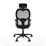 The Jorquera office chair model 2D036N2 by Piqueras y Crespo is an ergonomic solution specially designed for tall people and intensive use up to 24 hours, offering excellent support and comfort during long shifts. This office chair with headrest features a functional design including a height-adjustable headrest to provide proper neck rest, and an adjustable lumbar support that promotes correct posture and reduces fatigue. The 5-position synchro mechanism allows simultaneous adjustment of the backrest and seat tilt, adapting to individual user needs, while the seat height is adjustable between 48 and 61 cm to enhance ergonomics. Its 2D arms are adjustable in height and width, offering extra arm support and preventing muscle strain. The frame includes a 5-spoke nylon base with a 680 mm diameter and 65 mm nylon casters, enabling smooth and quiet mobility in any workspace. The combination of breathable materials, with a mesh backrest and a high-density injected foam seat (50 mm, 50 Kg/m³), ensures comfort and durability, while the navy blue finish adds a modern and sober touch that easily fits professional environments. It supports a maximum weight of 120 Kg, making it suitable for overweight users as well, and complies with the UNE-EN-1335 quality certificate and BIFMA standard. The Jorquera combines durability, functionality, and design aimed at providing a complete ergonomic experience, ideal for offices requiring robust, adaptable, and comfortable chairs for workers who spend long hours seated. In summary, this chair is a technical and reliable option that meets the specific needs of tall users and those requiring high-performance support and adjustment features.