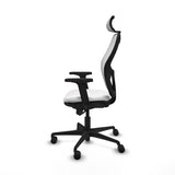 The Jorquera office chair by Piqueras y Crespo is designed for intensive and comfortable use, making it an ideal choice for those who work long hours thanks to its certification for extreme 24-hour use. This model stands out for its robust frame supporting up to 120 kg and advanced ergonomics, including a 2D adjustable headrest that provides cervical support, a 1D adjustable lumbar support to maintain healthy posture, and a fixed backrest combining stability and comfort. The 2D adjustable armrests allow for a personalized ergonomic position, while the seat height is adjustable between 48 and 61 cm, adapting to different users and spaces. The chair composition features a seat with a PVC interior reinforced with high-density injected polyurethane foam (50 mm thick and 50 kg/m³), ensuring excellent durability and comfort for extended periods. The backrest includes a PVC frame and is finished with breathable mesh that improves ventilation and reduces heat buildup, enhancing comfort even in warm environments. The 5-spoke nylon base with a 680 mm diameter and 65 mm nylon wheels, equipped with steel axles and bolts, guarantee quiet and secure mobility on various surfaces, adding durability and strength to the structure. The synchro system with 5 adjustment positions allows simultaneous tilting of the seat and backrest, with locks to stabilize posture in different work situations. Its white finish adds a modern and elegant touch that easily fits any office setting. This chair combines functionality, ergonomics, and design to provide comprehensive support at the workstation, making it a suitable solution for those seeking durability and comfort in professional furniture.