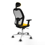 The Jorquera 2D086G1 office chair from the renowned brand Piqueras y Crespo is an ergonomic option designed to provide comfort and support during long workdays of up to 8 hours. This model features a fixed headrest that offers extra neck support, complemented by a 1D adjustable lumbar support that improves posture and reduces lower back discomfort. Its fixed backrest ensures stability, while the 2D adjustable armrests, which allow height and angle adjustment, provide comfortable forearm support, adapting to the user’s individual needs. Made with breathable mesh, this chair promotes proper ventilation to prevent heat buildup during intensive use. The frame includes a sturdy polished aluminum five-star base and 65 mm rubber-coated nylon casters specially designed to protect delicate floors, enabling smooth movement. Additionally, it features a synchro mechanism with five positions that allows adjusting the tilt of both the backrest and seat, promoting healthy postures and greater comfort. Its seat, with a width of 48 cm, offers a robust design with a high-density injected foam interior (50 mm and 50 Kg/m³), providing durability and comfort without deformation. The height is adjustable between 48 and 61 cm, with a total height ranging from 121 to 129 cm, fitting different user types with a recommended maximum weight of 120 kg. Presented in an attractive yellow color, this chair combines functionality and style, making it a practical and aesthetic solution for professional environments that require ergonomic and adaptable furniture. The Jorquera 2D086G1 chair stands as a reliable and well-designed product for those seeking comfort, personalized adjustment, and durability in an office chair with headrest.