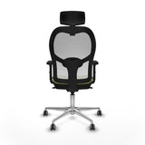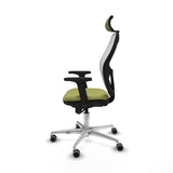 The Jorquera 2D086G2 office chair by Piqueras y Crespo is an ergonomic and functional solution designed for intensive use up to 24 hours, ideal for demanding workspaces requiring durability and long-lasting comfort. This chair features adjustable and height-regulated seating to adapt to the user's posture, optimizing ergonomics and comfort. It includes a 2D adjustable headrest that provides extra neck support, along with a adjustable lumbar support that promotes proper spinal alignment, reducing fatigue and tension during long shifts. Its backrest is fixed for stability, while the synchronised mechanism with 5 positions allows coordinated movement between seat and backrest, encouraging a natural and dynamic posture. The 2D adjustable armrests in height and angle offer ergonomic support for the forearms, enhancing comfort during work. The frame incorporates a polished aluminum 5-star base with a 720 mm diameter that ensures solidity and durability, complemented by a chrome lift piston for smooth and secure adjustment. The seat, with a reinforced PVC core and injected polyurethane foam of high density (50 Kg/m3) and 50 mm thickness, provides a firm yet comfortable surface, while the outer covering of mesh and fabric in olive green offers breathability to reduce heat and moisture buildup. Additionally, it has 65 mm rubber-coated wheels designed specifically for parquet floors, allowing silent movement and protecting the floor from scratches. Weighing approximately 18 kg and certified under UNE-EN-1335, this chair is a professional and safe option for office environments demanding a robust, adaptable, and comfortable seat, supporting users up to 120 kg. Its modern, functional design in green tones combines aesthetics and performance, ensuring an effective and lasting ergonomic experience for any desk or workspace.