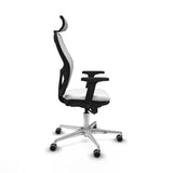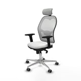 The Jorquera 2D086G2 office chair by Piqueras y Crespo is an operational model designed to provide optimal comfort during long working hours, with a recommended continuous use capacity of 24 hours and a maximum support of 120 kg. It stands out for its modern combination of materials, featuring an outer finish in breathable white mesh that promotes air circulation, and a seat with an interior of high-density injected polyurethane foam (50 mm and 50 Kg/m3) that offers superior durability and comfort. The structure includes a polished aluminum five-star base with a 720 mm diameter, complemented by 65 mm rubber-coated nylon wheels specifically designed to protect delicate floors such as parquet, ensuring quiet and smooth movement. This chair incorporates an adjustable headrest that provides cervical support, along with an adjustable lumbar support that helps maintain proper posture, reducing muscle fatigue. Its 2D arms allow adjustment in both height and angle, adapting to the user’s ergonomic needs. Additionally, it features a synchronised mechanism with five positions to coordinate the tilt of the backrest and seat, ensuring correct weight distribution and comfort in various postures, with seat height adjustable from 48 to 61 cm, and a total height adjustable between 121 and 134 cm. The fixed backrest is built with an outer PVC frame that provides firmness without sacrificing comfort. Weighing 18 kg and certified according to UNE-EN-1335 standards, this chair combines functionality, ergonomics, and durability, aimed at improving work and study experience, especially for those requiring continuous and reliable performance. The Jorquera positions itself as a quality and functional design alternative for those seeking a white office chair with adjustable headrest and armrests, suitable for intensive use and with finishes that optimize ergonomics and protect delicate surfaces.