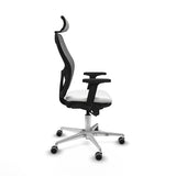The office chair with headrest 2D086G2 from Piqueras y Crespo is a model designed to offer maximum functionality and ergonomics, ideal for professional environments requiring intensive and prolonged use, with a continuous use capacity of 24 hours and a maximum support of 120 kg. This task chair stands out for its adjustable and height-regulated seat, allowing the seat height to be set from 48 to 61 cm, with a total height ranging between 121 and 134 cm, facilitating customization for different users. The fixed backrest, with adjustable lumbar support, provides stable and ergonomic back support, while the 2D adjustable headrest offers optimal neck support, improving posture and preventing discomfort during long work sessions. Equipped with 2D armrests, this chair allows modification of both height and angle of the armrests for comfort adapted to various positions and tasks. The synchro mechanism with five-position lock enables coordinated adjustment of the backrest and seat according to the most convenient posture at any time, promoting active ergonomics. Its structure features a polished aluminum five-star base with a 720 mm diameter, providing stability and durability, complemented by a high-durability chrome gas lift. The 65 mm rubber-coated nylon wheels, suitable for parquet floors, ensure silent and smooth movement within the workspace. Regarding materials, the seat is made with a reinforced honeycomb PVC interior and high-density injected polyurethane foam (50 mm and 50 Kg/m3) ensuring comfort and durability, while the backrest has an outer PVC frame combined with a breathable white mesh/fabric finish that promotes ventilation. Weighing approximately 18 kg and certified UNE-EN-1335, this chair meets European ergonomic and safety standards for office chairs. Its modern design in white adds an elegant and professional touch, suitable for users seeking a combination of style, functionality, and comfort, especially recommended for designers and professionals who require a durable chair for continuous use. The 2D086G2 is a versatile option that provides support and adaptability in active and demanding workspaces.