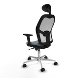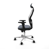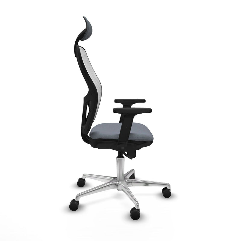 The 2D086N1 office chair with headrest from the brand Piqueras y Crespo is designed to provide comfort and ergonomics during long work sessions of up to 8 hours. This office chair in grey features a fixed headrest that offers additional neck support, improving posture and reducing fatigue. It stands out for its adjustable height and seat height regulation, easily adapting to different users and allowing a personalized experience. Equipped with 2D armrests, which adjust both height and angle, it offers ergonomic arm support in multiple positions. Its synchronised mechanism with 5 positions provides precise control of the backrest and seat tilt to promote healthy posture and dynamic movement while working. The backrest is fixed, ensuring stability and firmness, along with an adjustable lumbar support that helps maintain correct spinal alignment, avoiding muscle strain. The chair is made with high-density injected foam (50 mm and 50 Kg/m3), providing a comfortable and durable seat. The backrest and seat combine breathable mesh and fabric, promoting proper ventilation to keep cool during extended use. Its structure includes a polished aluminium 5-star base with 65 mm nylon wheels that ensure smooth and silent movement, ideal for modern office environments. It supports a maximum weight of 120 kg and meets UNE-EN-1335 certification, guaranteeing quality and safety. The total width of the chair is 68 cm, with a seat width of 48 cm, and offers an adjustable height range between 121 and 129 cm overall, with a maximum seat height of 61 cm. This model combines functionality, ergonomics, and elegant design, making it suitable for professionals requiring ergonomic furniture as well as reception areas or tasks demanding prolonged comfort, also suitable for specialized uses such as seamstresses or cashiers. In summary, the Piqueras y Crespo 2D086N1 chair is a balanced solution in design and support for those seeking lasting comfort and adaptability in their office chair with headrest.