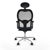 The Jorquera 2D086N1 office chair by Piqueras y Crespo is designed to provide comfort and ergonomics during intensive work sessions of up to 8 hours of continuous use. This task chair features an adjustable height system that allows precise adaptation for different users, with a range from 48 cm to 61 cm seat height, helping maintain proper posture. It includes 2D armrests adjustable in height and angle, offering extra comfortable support and helping prevent shoulder and arm strain. Its fixed backrest and fixed headrest provide stable support for the back and neck, combined with an adjustable lumbar support that promotes the natural curvature of the spine, ideal for protecting postural health during prolonged use. The breathable backrest and seat, made of high-quality mesh and fabric, ensure proper ventilation to avoid heat and moisture buildup, enhancing comfort during long work sessions. Its structure features a sturdy polished aluminum five-star base with a diameter of 720 mm and 65 mm nylon silent casters, allowing smooth and safe movement on various surfaces. It supports a maximum weight of 120 kg, ensuring stability without losing lightness, as the chair weighs only 18 kg. The injected foam seat with 50 mm thickness and 50 Kg/m3 density adapts to the body shape to provide lasting comfort without deformation, while PVC and plastic finishes ensure durability and easy maintenance. Additionally, it has a five-position synchro mechanism that allows adjusting the tilt of both the backrest and seat, enabling full customization to find the most ergonomic and functional posture at any time. All these features make the Jorquera chair a practical and robust office furniture piece, especially suitable for professional environments where comfort and postural health are priorities. Its light blue color adds a modern and pleasant tone that easily fits into any workspace. Overall, this chair offers a comprehensive solution combining precise technical adjustments and quality materials to enhance the daily work experience.