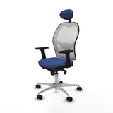 The Jorquera office chair model 2D086N1 by Piqueras y Crespo is a functional and ergonomic option designed for intensive use of up to 8 hours daily, supporting a maximum weight of 120 kg. This office chair with headrest features a fixed headrest that provides extra neck support, while the fixed backrest offers stability throughout the day. It is equipped with 2D adjustable arms, allowing height and angle adjustments to suit different postures and user needs. Its 5-position synchro mechanism synchronizes the tilt of the backrest and seat, promoting an ergonomic and comfortable posture, and includes adjustable height ranging from 48 to 61 cm for the seat and a total height of 121 to 129 cm, adapting to various heights. The seat is made with a reinforced PVC interior and high-density injected polyurethane foam (50 mm and 50 kg/m³), ensuring lasting comfort even after long work sessions. The backrest has an outer PVC frame and breathable mesh finish that enhances ventilation, preventing heat buildup and improving comfort. The solid and durable base is polished aluminum with 5 spokes and a diameter of 720 mm, complemented by a chrome piston for height adjustment and 65 mm nylon wheels with steel axles and bolts that ensure smooth and quiet movement on different surfaces. Its navy blue color adds a modern and sober touch that fits perfectly in professional environments or home offices. Certified under UNE-EN-1335 standard, this chair combines functionality and durability, also making it a suitable option for teenagers needing an ergonomic solution for studying or working. The Jorquera represents a balance of design, comfort, and efficiency, ideal for those who require an adjustable office chair with good lumbar support and a design intended for long hours.