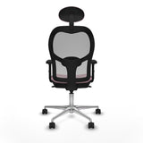 The seat and backrest feature a breathable design thanks to the combination of mesh and fabric, which improves ventilation and prevents overheating, while incorporating a robust internal structure with high-density injected polyurethane foam (50 mm thick and 50 Kg/m³) that ensures comfort and pressure absorption. The chair’s base is made of polished aluminum with 5 spokes and a diameter of 720 mm, providing stability and firm support in every movement. Maneuverability is enhanced by 65 mm nylon wheels with steel internal axles, ensuring smooth and quiet movement over various surfaces. Its pink finish offers a modern and distinctive touch, ideal for environments seeking to combine functionality with style.