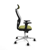 The office chair with headrest 2D086N2 from Piqueras y Crespo is an ergonomic and functional solution designed for intensive use of up to 24 continuous hours, suitable for both desks and computer workspaces. This model includes an adjustable 2D headrest that provides cervical support and improves posture, while the adjustable lumbar support helps reduce fatigue and tension in the lower back, promoting a healthy position during long workdays. Its adjustable height and synchro mechanism with 5 locking positions allow adapting both the backrest and seat angle for maximum comfort and personalized support. The 2D armrests offer dual adjustment in height and angle, providing ergonomic support for forearms and shoulders. The chair’s frame features a polished aluminum 5-star base with a diameter of 720 mm, equipped with a chrome lift piston for smooth and precise height adjustment. Its 65 mm nylon wheels with steel internal axles ensure smooth and quiet movement on all typical office surfaces. The combination of materials such as breathable olive green mesh, which promotes ventilation and prevents heat buildup, along with a high-density injected foam seat (50 mm thick and 50 Kg/m³ density), offers an optimal balance between firm support and prolonged comfort. The seat dimensions — 48 cm wide and an adjustable height between 48 and 61 cm — fit most users, ensuring proper ergonomic posture. This chair, certified according to UNE-EN-1335 standard, supports a maximum weight of 120 kg and is designed with a durable seat combining a reinforced PVC interior and a 1 mm thick plastic exterior for long-lasting use. Overall, the Jorquera chair by Piqueras y Crespo integrates technical features and a design focused on comfort and durability, making it a reliable and versatile choice for professional environments requiring high-demand, functional furniture.