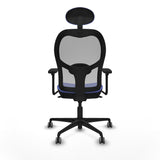 The office chair with headrest 3D036G1 from Piqueras y Crespo is an ergonomic solution designed for intensive use, ideal for teleworking and professional spaces that require continuous comfort and functionality. This office chair features an adjustable height system that allows precise adaptation to the user’s posture and needs, enhancing comfort during long hours. Equipped with 3D armrests offering height and angle adjustment, it provides personalized support that helps prevent arm and shoulder strain. Its five-position synchro mechanism enables synchronized reclining of the backrest and seat, promoting a consistent ergonomic posture and reducing fatigue. It includes a fixed headrest and an adjustable lumbar support for cervical and lumbar support, contributing to correct spinal alignment during extended work sessions. The chair is made with breathable materials, combining mesh and fabric to ensure optimal ventilation, while the injected high-density foam (50 mm and 50 Kg/m³) delivers lasting firmness and comfort. Its five-star nylon base with a 680 mm diameter, along with 65 mm rubberized nylon wheels designed for parquet floors, ensure stability and smooth, quiet mobility on any surface. The structure integrates a reinforced PVC honeycomb interior that increases seat durability, complemented by a 1 mm thick plastic exterior and a PVC outer frame on the backrest, providing durability and lightness. This chair supports a maximum weight of 120 kg and is certified according to UNE-EN-1335 standards and BIFMA, guaranteeing quality and safety in use. Available in an elegant light blue color, with a total width of 68 cm and a height range from 121 to 129 cm, it is a complete solution prioritizing postural health and functionality for the workplace. The Jorquera chair represents a robust and adjustable option for those seeking to combine design, comfort, and regulatory compliance in office furniture.