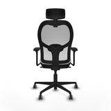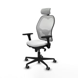 The Jorquera office chair with headrest from Piqueras y Crespo is an ergonomic solution designed for intensive use of up to 24 continuous hours, ideal for professionals needing comfort and support during long workdays. This model, presented in an elegant white color, stands out for its structure with 3D adjustable arms, allowing height and angle adjustments to provide personalized ergonomic support. Its synchro mechanism with 5 positions facilitates the regulation of the backrest and seat tilt, enabling the fixation of the most comfortable and healthy posture, while the seat height is adjustable within a range of 48 to 61 cm, adapting to different user heights. The fixed backrest, complemented by a 2D adjustable headrest and a adjustable lumbar support, reinforces proper cervical and lumbar spine alignment, helping to prevent discomfort caused by prolonged sitting. The combination of breathable mesh and fabric materials, along with a seat made of high-density injected foam (50 mm and 50 Kg/m3), ensures a comfortable and durable user experience. Its 5-star nylon base with a diameter of 680 mm guarantees stability, while the 65 mm rubberized wheels, specifically designed for parquet floors, allow smooth and silent movement without damaging surfaces. It supports a maximum weight of 120 kg and complies with the UNE-EN-1335 certification, ensuring quality and functional safety. With a total weight of 18 kg and dimensions suited for the modern office, this chair combines functionality, durability, and contemporary design, making it a suitable option for those seeking a white, breathable office chair with multiple adjustments to enhance user ergonomics and comfort. In short, the Jorquera is a technical investment that optimizes well-being and productivity in demanding work environments.