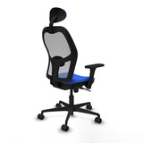 The office chair with headrest model 3D036N1 by Piqueras y Crespo is an ergonomic and functional solution designed for intensive use of up to 24 hours daily and a maximum capacity of 120 kilos, ideal for teleworking or demanding professional environments. This office chair stands out for its frame that includes a fixed headrest and a fixed backrest providing stability, along with an adjustable lumbar support that adapts to the natural curve of the spine, optimizing comfort during long workdays. It is equipped with 3D armrests, offering height and angle adjustment to customize forearm support and reduce muscle fatigue, complemented by a high-density injected foam seat (50 mm and 50 Kg/m3) that ensures a comfortable and durable seat. Its breathable blue mesh finish guarantees optimal ventilation, preventing heat and moisture buildup, while the 5-star nylon base with 65 mm silent wheels allows smooth movement on any surface, enhancing mobility without damaging floors. The synchro mechanism with five positions lets you adjust both the backrest and seat tilt, achieving an ergonomic posture adapted to different activities and personal preferences. Additionally, it features a smooth and stable height adjustment system, ranging from 48 to 61 cm seat height and a total height between 121 and 129 cm, ensuring proper alignment and comfort for users of various heights. This model complies with UNE-EN-1335 standards and holds BIFMA certification, guaranteeing its quality and safety as a professional office chair. Its modern, functional design and sober colors make it easy to integrate into workspaces, meeting rooms, and home offices, offering a balance between ergonomics, durability, and aesthetics. In summary, the Jorquera 3D036N1 chair by Piqueras y Crespo is a solid, adjustable, and breathable option for those needing a comfortable and sturdy solution for extended work environments.