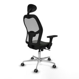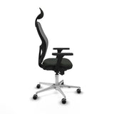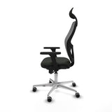 The 3D086G1 office chair with headrest from Piqueras y Crespo is an ergonomic seat designed for intensive use up to 24 hours, providing proper support for long shifts. This black office chair features adjustable height, allowing the seat to be set between 48 and 61 cm for a comfortable, personalized posture. Equipped with 3D armrests, it offers height and angle adjustment for optimal forearm support, helping reduce muscle strain. Its fixed headrest and adjustable lumbar support ensure ergonomic back and neck support, preventing discomfort from prolonged use. The backrest is fixed with an outer PVC frame for durability, while the seat combines a reinforced PVC interior with high-density injected polyurethane foam (50 mm and 50 Kg/m3), providing firm, lasting comfort. Its breathable mesh fabric enhances ventilation, keeping freshness even during extended use. The base is made of polished aluminum with five spokes and a diameter of 720 mm, paired with a chrome lift piston for stability and easy height adjustment. The 65 mm diameter wheels, made of rubber-coated nylon with steel axles and bolts, allow smooth, silent movement on delicate surfaces like parquet. It includes a synchro mechanism with 5 locking positions to adjust the tilt of the backrest and seat, promoting ergonomic postures without sacrificing comfort. The chair supports a maximum weight of 120 kg and complies with UNE-EN 1335 standards, ensuring quality and safety. With a seat width of 48 cm and a total width of 68 cm, this model combines functionality, ergonomics, and modern design to enhance any professional workspace. In summary, the 3D086G1 office chair by Piqueras y Crespo is a solid, technical choice for those needing durable, adjustable, and comfortable furniture for intensive all-day use.