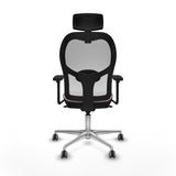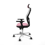 The office chair with headrest 3D086G2 by Piqueras y Crespo is an ergonomic model specially designed to withstand intensive use of up to 24 hours, ideal for professionals who require comfort and functionality during long shifts. This office chair features an adjustable height system with a range from 48 cm to 61 cm and a total adjustable height between 121 and 134 cm, allowing precise positioning to suit different needs and desk types, especially suitable for high desks. Its 2D adjustable headrest provides extra neck support, while the fixed backrest with adjustable lumbar support helps maintain correct posture and reduces lumbar strain, making it a good option for people with lower back issues. It is equipped with 3D arms that allow height and angle adjustment, offering personalized arm support and promoting full ergonomics. The seat, made with a combination of mesh and breathable fabric, provides ventilation that enhances comfort in warm or extended environments. The frame features a polished aluminum 5-star base with a 720 mm diameter and 65 mm diameter rubberized wheels designed for parquet floors, ensuring smooth mobility and floor protection. Additionally, its synchro mechanism with 5 tilt positions allows adjustment of both the backrest and seat tilt, ensuring ergonomic and stable positioning in every setting. The high-density injected foam, with 50 kg/m3 density and 50 mm thickness, offers lasting comfort and adapts the seat to the body shape. With a modern design and a pink finish, this chair combines functionality and style, suitable for users seeking a sturdy, ergonomic, and comfortable product for demanding workdays, with a maximum load capacity of 120 kg. The 3D086G2 chair by Piqueras y Crespo is a complete solution for those looking for comfort, durability, and postural health in their workspace.
