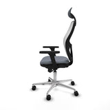 The office chair with headrest 3D086N1 by Piqueras y Crespo is designed for intensive, prolonged use, ideal for those working long hours at the computer. This chair combines ergonomic design with high-quality materials and adjustable features to maximize comfort and postural support. It features a fixed headrest and a fixed backrest that provide stability and support, complemented by an adjustable lumbar support to reduce lower back strain. The 3D armrests allow height and angle adjustment, adapting to individual user needs, while its high-density injected foam seat (50 mm and 50 Kg/m³) ensures lasting comfort without deformation. The seat height is adjustable between 48 and 61 cm, fitting different desk types and user heights. Its structure includes a polished aluminum five-star base with a 720 mm diameter and 65 mm nylon casters, ensuring smooth and silent movement, ideal for dynamic work environments. The grey mesh and fabric finish not only offers a modern look but also promotes breathability, helping maintain a comfortable body temperature during long hours. This chair supports a maximum weight of 120 kg and is certified under UNE-EN-1335, guaranteeing quality and ergonomics. Its synchro mechanism with five positions makes it easy to find the best posture, optimizing mobility and ergonomics while seated. The chrome lift piston allows precise seat height adjustments. Weighing 18 kg, it combines sturdiness with easy maneuverability in the workspace. In summary, this office chair is a practical and technical solution for those needing a durable, comfortable, and functional model that offers adaptive support and continuous comfort during long workdays.