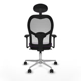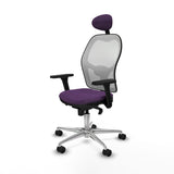 The office chair with headrest 3D086N1 from Piqueras y Crespo is a model specially designed to provide comfort and ergonomics in demanding work environments. This office chair features an elegant purple finish and includes a fixed headrest that offers extra support for the cervical area, complemented by an adjustable lumbar support that helps maintain a healthy posture during long periods. Its adjustable and height-regulable seat allows users to adapt the chair to their specific needs, while the 3D armrests provide flexibility and comfort by adjusting in multiple directions, helping reduce tension in shoulders and arms. The backrest and seat are made with breathable materials, combining a mesh and fabric structure that ensures optimal ventilation and prevents heat buildup, ideal for intensive use up to 24 hours. The injected foam of 50 mm with a density of 50 Kg/m3 offers excellent adaptability and comfort without losing firmness, supporting a maximum weight of 120 kg. The base is made of polished aluminum with five spokes and a diameter of 720 mm, ensuring stability and durability, while the 65 mm nylon wheels facilitate movement on delicate floors such as parquet, protecting the surface. Additionally, the 5-position synchro mechanism allows precise adjustment of the tilt of both the backrest and seat, enabling secure fixation for different working postures. Its functional and contemporary design combines technical elements with a refined aesthetic, making this chair a versatile and durable solution for both offices and homes. In summary, the Jorquera 3D086N1 chair by Piqueras y Crespo offers an optimal balance between advanced ergonomics and high-quality materials for a comfortable and healthy work environment.