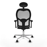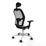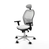 The Jorquera office chair with headrest from Piqueras y Crespo is a practical solution designed for intensive use up to 24 hours daily, aimed at providing comfort and ergonomics for demanding professionals. This office chair in white features a fixed headrest and a stable backrest that offer proper support for the neck and back, while the adjustable lumbar support helps maintain a healthy posture during long workdays. Thanks to its 3D armrests, you can adjust the height and angle of the armrests for personalized support, adding comfort and reducing muscle fatigue. It includes a synchron mechanism with 5 positions that allows you to adjust the tilt of both the backrest and seat, helping to find the most ergonomic posture for work or short breaks. The seat is upholstered with breathable mesh and made with high-density injected polyurethane foam (50 mm and 50 Kg/m3), ensuring a comfortable, durable surface that prevents heat buildup. Its structure stands out with a polished aluminum 5-star base, complemented by a chrome piston for height adjustment, allowing regulation from 48 to 61 cm in seat height and a total adjustable height between 121 and 129 cm. The 65 mm nylon wheels enable smooth and silent movement, while its maximum capacity supports up to 120 kg, ensuring strength and stability. This model combines advanced functionality and modern design, suitable for any professional environment requiring a sturdy, comfortable chair with elegant white finishes. Overall, the Jorquera chair represents a technical investment aimed at improving productivity and well-being in intensive workspaces.