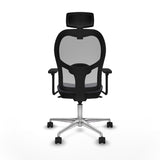 The Jorquera 3D086N2 office chair with headrest from Piqueras y Crespo is an ergonomic solution designed for intensive use of up to 24 hours daily, ideal for those who need a comfortable and functional chair for long computer work sessions. It features a synchro mechanism with 5 positions that allows adjustment of the backrest and seat tilt, providing adaptable support for different postures and needs. The 2D adjustable headrest offers important cervical support that, together with the 1D adjustable lumbar support, helps maintain correct posture and reduces muscle fatigue. Its 3D armrests can be adjusted in height, depth, and lateral movement, providing personalized ergonomic support for arms and shoulders. The frame includes a polished aluminum 5-star base with a 720 mm diameter and a chrome lift piston that ensures strength and smooth movement thanks to the 65 mm nylon wheels with steel axle and pin for greater durability and silent mobility. The seat consists of high-density injected polyurethane foam (50 mm thick and 50 kg/m3), externally covered by a 1 mm plastic base, while the backrest combines an outer PVC frame with a breathable mesh finish that promotes ventilation and comfort during long hours of use. The dark grey design provides a sober and professional finish that easily fits any office or studio environment. With an adjustable seat height range between 48 and 61 cm and a total height varying from 121 to 134 cm, this chair adapts to different users offering stability and strength to support up to 120 kg. Certified under the UNE-EN-1335 standard, the Jorquera chair delivers a comfortable and ergonomic seating experience with quality materials that ensure durability and constant support. This chair represents a technical and efficient option for professionals seeking to balance comfort, personalized adjustment, and robustness in their workspace.