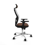 The Jorquera office chair with headrest by Piqueras y Crespo is an operational model designed to provide comfort and ergonomics during long work or study sessions. It stands out for its adjustable structure, which includes a height-adjustable headrest and an also adjustable lumbar support, key elements to maintain proper posture and reduce muscle fatigue. The chair features 3D armrests that allow adjustment not only in height but also in angle, offering personalized ergonomic arm support. Its 5-point synchro multi-position mechanism promotes mobility and comfort by simultaneously adjusting the backrest and seat to maintain postural balance at the desired angle. The seat is made with high-density injected foam (50 Kg/m³) and 50 mm thickness, covered with mesh and fabric, providing excellent breathability and thermal comfort during prolonged use. The polished aluminum five-star base with a diameter of 720 mm offers stability and durability, while the 65 mm nylon wheels allow smooth and silent movement on various floor types. Its white design with dark brown details adds a modern and elegant touch to any work or study environment. The seat height is adjustable from 48 to 61 cm, with a total height adjustable between 121 and 134 cm, adapting to different desks and users. Additionally, it is certified under the UNE-EN-1335 standard and supports a maximum weight of 120 kg, ensuring safety and durability. This chair, designed for intensive use of up to 24 continuous hours, combines functionality, ergonomics, and style, suitable for those seeking full and personalized support during long hours at the computer or preparing for exams.