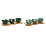 Appetizer Set Home ESPRIT Green Dark green Bamboo Porcelain Tropical 4 Pieces 32 x 10 x 7 cm (2 Units)