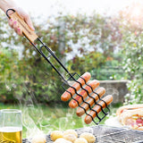 An original design barbecue grill for sausages which is ideal for enjoying delicious hot dogs, frankfurters, chorizo and other cured meats. This robust iron grill is non-stick so the food doesn't stick and is cooked more easily and efficiently. The ergonomic wooden handle is extra-long, which enables a more comfortable grip and avoids the danger of getting burnt during use. It features a safety ring which prevents the grill from opening while the food is cooking, providing a firm hold.