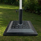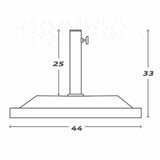 The Aktive umbrella stand is a base designed to provide stability and security for outdoor parasols, made from polyresin plastic that combines lightness with durability. This stand weighs approximately 12 kg, enough to anchor the parasol and ensure firmness even against light gusts of wind, preventing unwanted movement. Its black finish offers versatility and discretion, easily blending with various outdoor furniture styles. The base measures approximately 44 x 33 x 44 cm, with a stable surface of 44 x 44 cm, providing an adequate area to support umbrellas of different sizes without compromising stability. Its compact design makes it easy to place on terraces, gardens, or rest areas, optimizing space without sacrificing functionality. The sturdy polyresin structure withstands typical outdoor conditions, including rain and sun exposure, ensuring a long product lifespan. Overall, the Aktive umbrella stand combines weight, dimensions, and suitable materials to fulfill the essential function of keeping the parasol stable for comfort and sun protection. It is a practical and durable solution for securely anchoring umbrellas in outdoor environments.