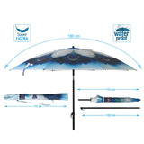 If you want to add a touch of originality to your home, you will do so with Beach parasol Blue Ø 180 cm SPF50+ Peacock.