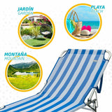 The Aktive Marinero beach lounger is a practical and durable solution for enjoying outdoor relaxation, featuring an aluminum frame that ensures lightness and corrosion resistance, ideal for beach environments. Its textilene fabric offers comfort and breathability, providing a firm and cool seat, while the blue and white color combination adds an attractive nautical style. This lounger is foldable and includes a 3-position reclining system, allowing adjustments from upright to fully flat for maximum relaxation. Measuring 188 x 58 x 30/68 cm, it comfortably fits most users and supports a maximum weight of 110 kg. It also features an integrated handle for easy transport and handling, making it a functional and lightweight option for the beach, pool, or any outdoor space. Overall, the Aktive Marinero lounger stands out for its durable materials, easy folding, appealing design, and versatile adjustments that meet basic outdoor rest needs with quality and simplicity.