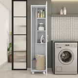 Broom cupboard Alexandra House Living White Wood MDP 42 x 183 x 41 cm 1 door Reversible With wheels