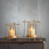 Candleholder Brown Golden Wood Crystal Steel 24 x 24 x 26 cm