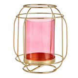 Candleholder Gift Decor Pink Golden Metal Glass 19 x 20 x 19 cm Lantern