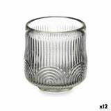 Candleholder Gift Decor Grey Crystal 7,5 x 7,8 x 7,5 cm Stripes (12 Units)