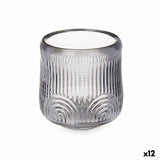 Candleholder Gift Decor Grey Crystal 9 x 9,5 x 9 cm Stripes (12 Units)