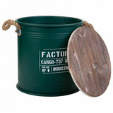 Bucket container Alexandra House Living Factory Green Hemp Metal Fir wood 35 x 35 x 37 cm With handles Circular